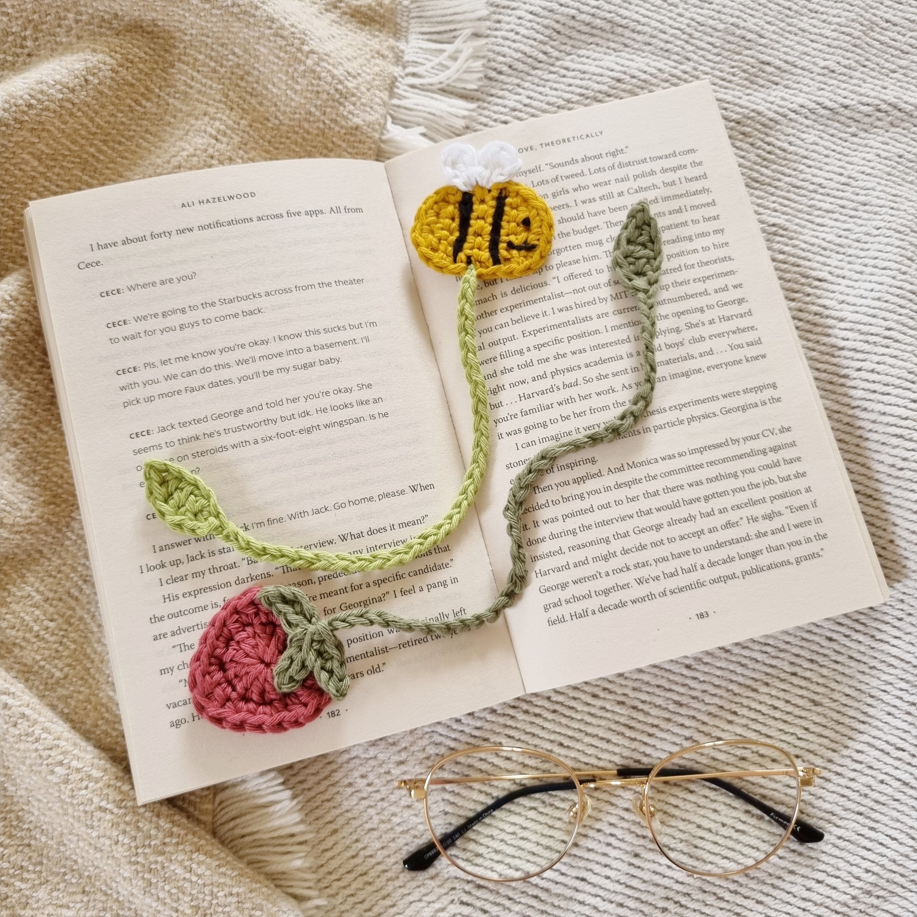 Crochet Bumble Bee And Strawberry Bookmark Book Gift Token Etsy